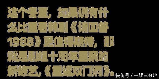 综艺里,德善一家出刻下,阿泽最欢腾地站了起来,而德善一到就端起善宇的拉面启动吃,娃娃鱼东龙无奈看着她。仿佛回到剧里临了一幕,45岁的德善再次回到双门洞,推开阿泽房间的门,正焕、阿泽、娃娃鱼和睦宇就坐在电视前,呼叫她,“德善,快来啊。”