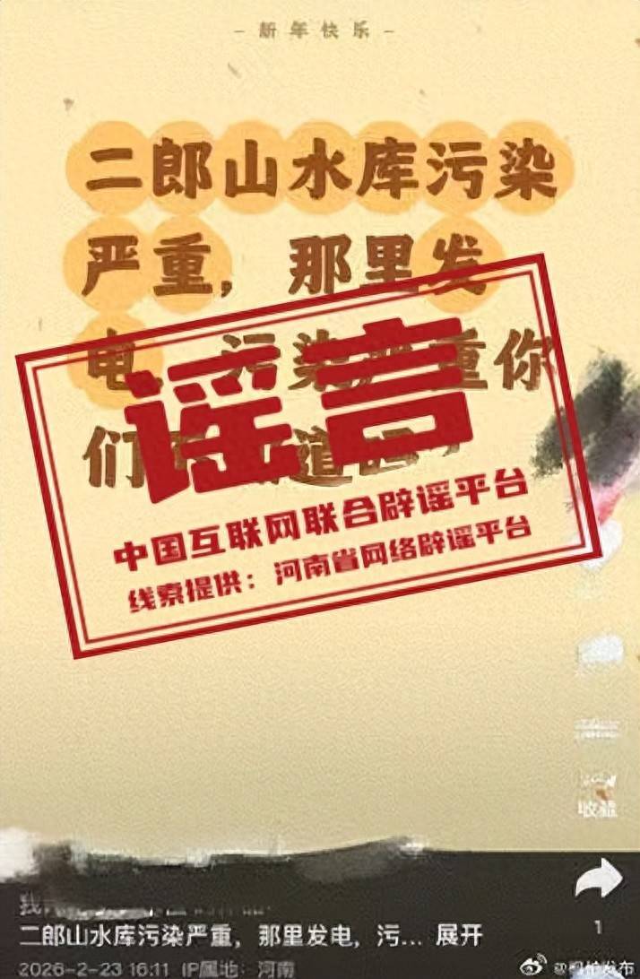 确定:近日,有网民发布视频称,“河南桐柏县二郎山水库因发电导致水库沾污严重”,激励网友感情量度。经属地政府、水利、生态环境等有关部门核实,二郎山水库属于中型水库,以防洪、灌溉为中枢,未承担发电责任,相近无沾污问题。该践诺为空虚信息。(起原:河南省收罗辟谣平台、@桐柏发布)